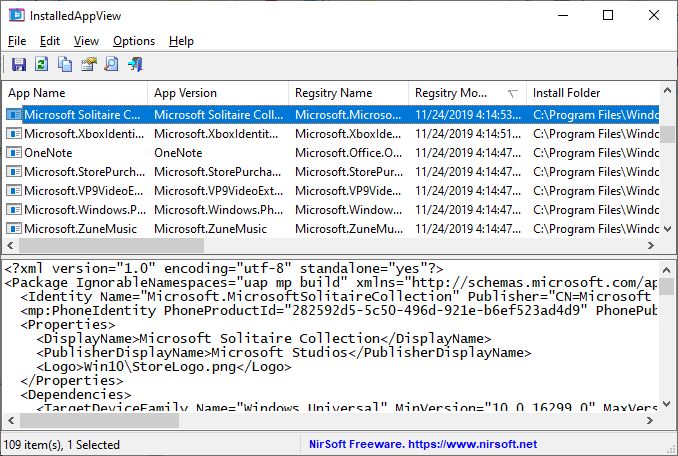Nirsoft InstalledAppView