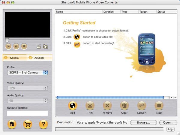 3herosoft Mobile Phone Video Converter for Mac OS X (PowerPC) v3.0.7.0717